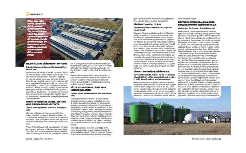 Tarım ve Orman Bakanlığı yayını olan "Türk Tarım Orman" dergisi Mayıs-Haziran 2020 sayısında bölgemize yer vermiştir. Yönetim Kurulu Başkanımız Birol Mermer kendisiyle yapılan röportaj da bölgeye ve yetiştiriciliğe dair soruları yanıtlamıştır.